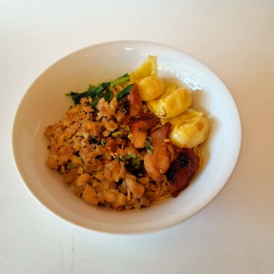 Large portion of our signature egg noodle with minced chicken, BBQ Chicken, chicken strips, and 3 pcs of prawn wontons.